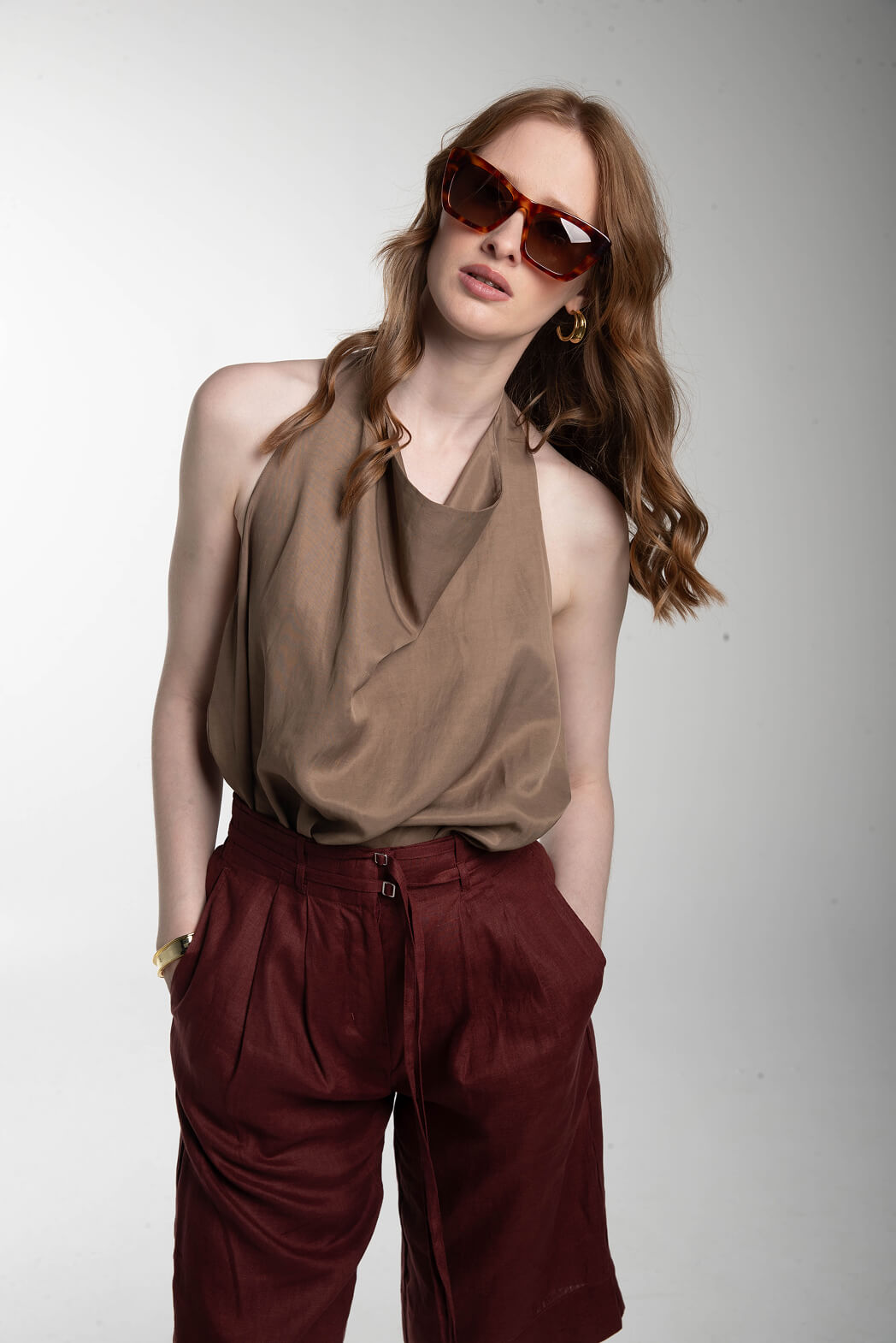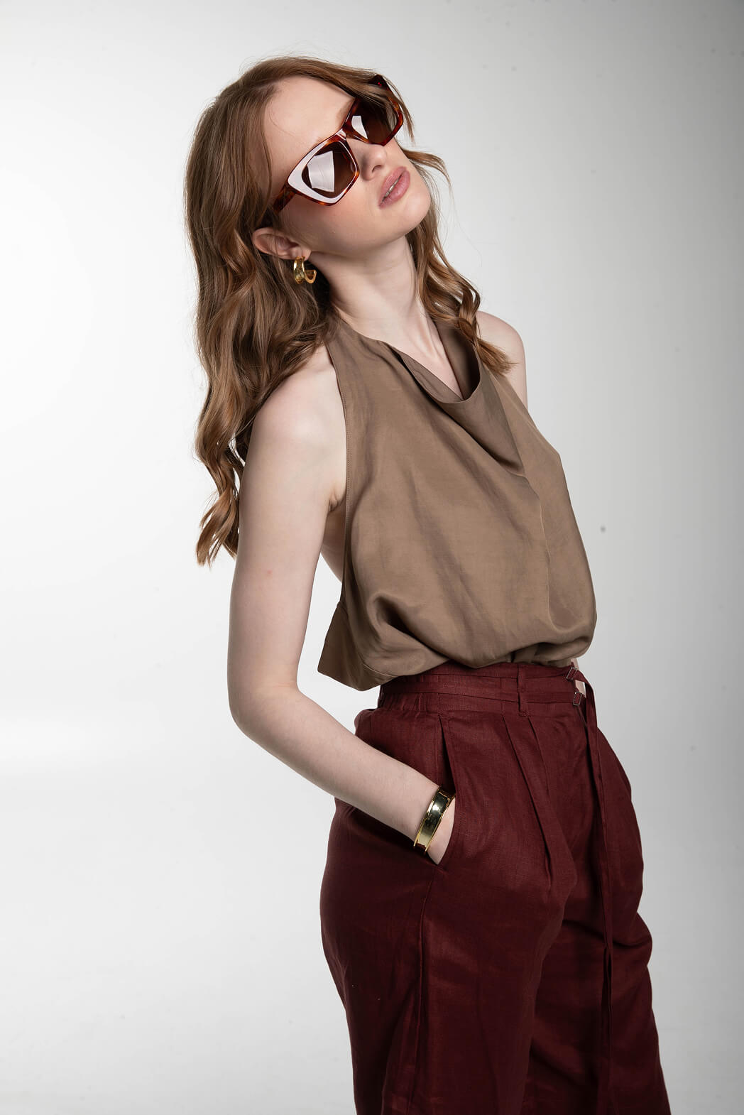 Блузка с открытой спиной – ткань блузки с лёгким мерцанием красиво играет на свету, а изящные линии подчёркивают женственные изгибы