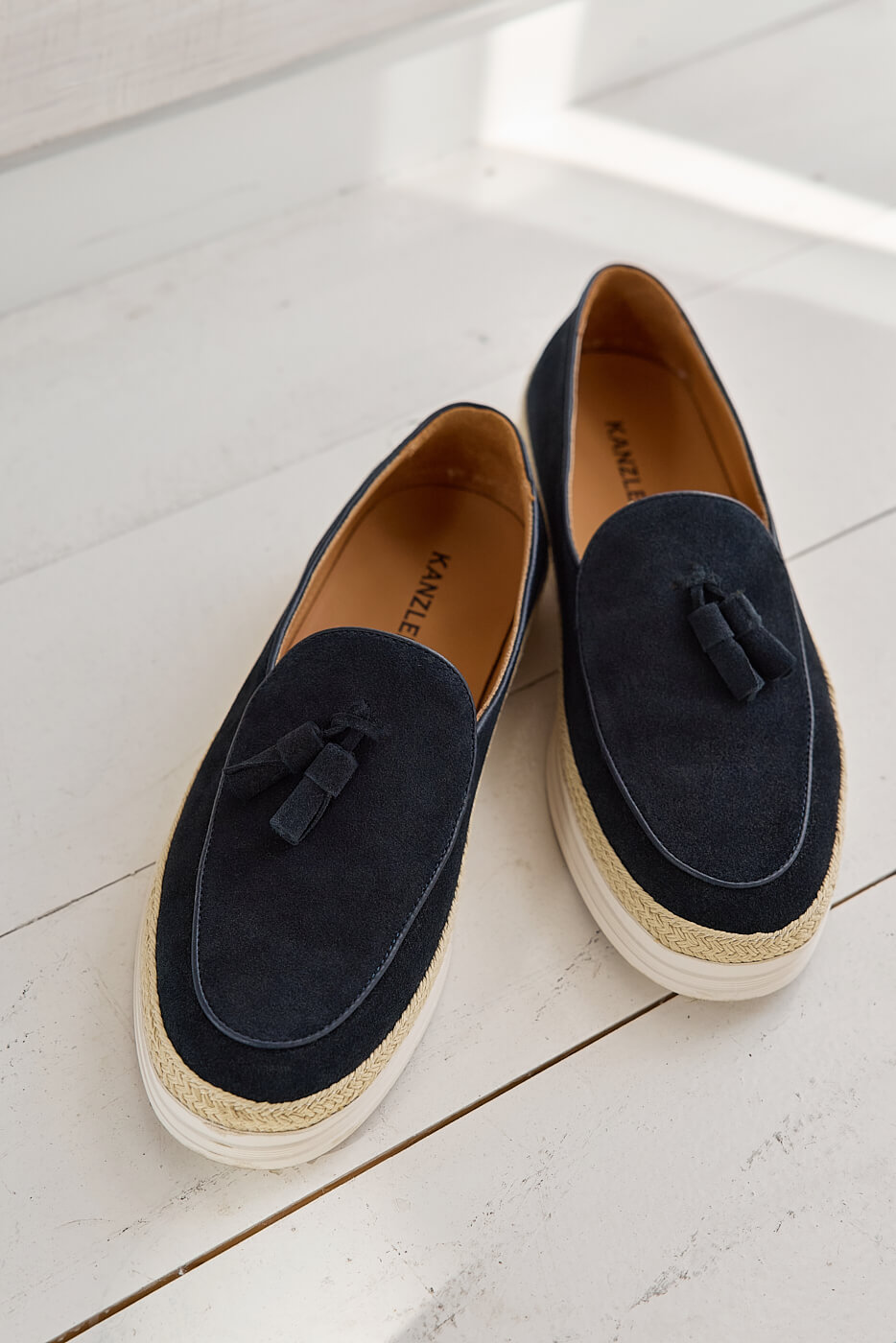 Темно-синие лоферы из натуральной замши