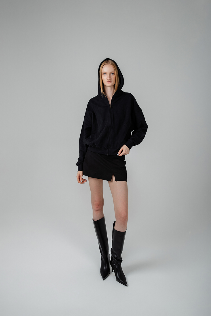Высокие кожаные сапоги черного цвета с острым мысом
