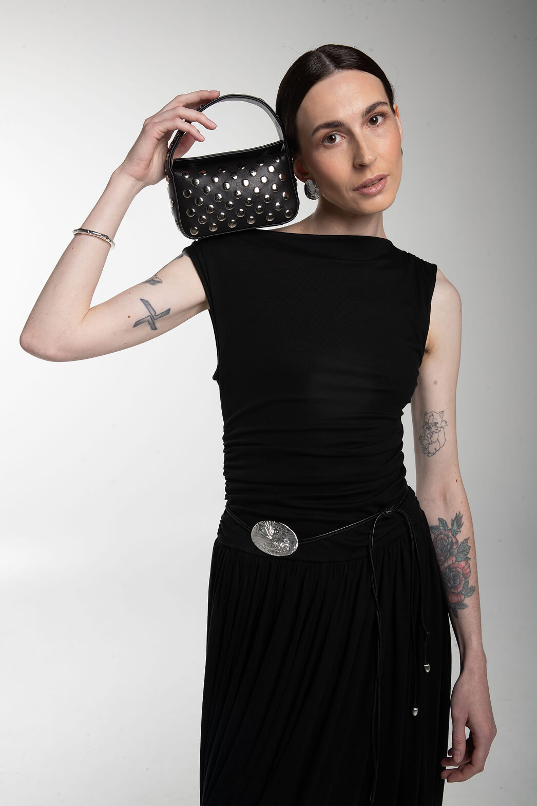 Сумка из натуральной кожи с заклепками – это стильный и практичный аксессуар, который подчеркнет ваш образ