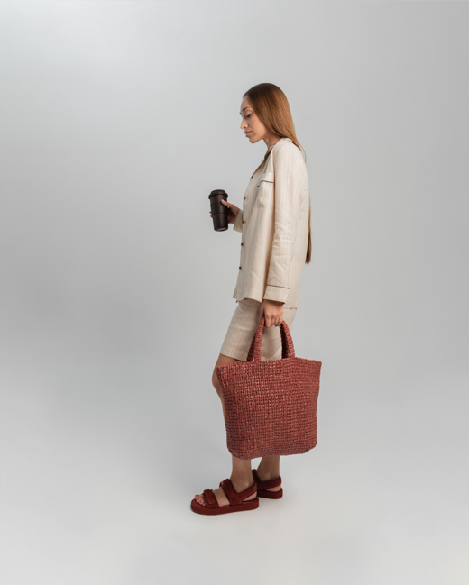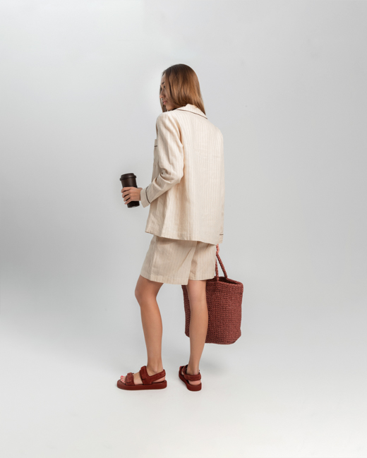 Трендовый костюм в пижамном стиле в нежном кофейном оттенке позволит чувствовать себя комфортно и при этом прекрасно дополнит как образ для отпуска, так и для прогулки с друзьями или пляжной вечеринки.