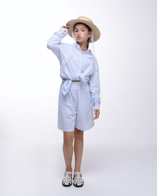Состав образа: Блузка, шорты, шляпа, сандалии