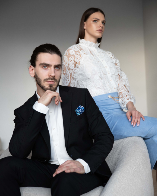 Шикарный черный и контрастный белый, идеальные линии кроя – привычное сочетание в классике может стать новой иконой стиля, если добавить к этому образу яркий акцент в виде аксессуара – платок, галстук или часы.