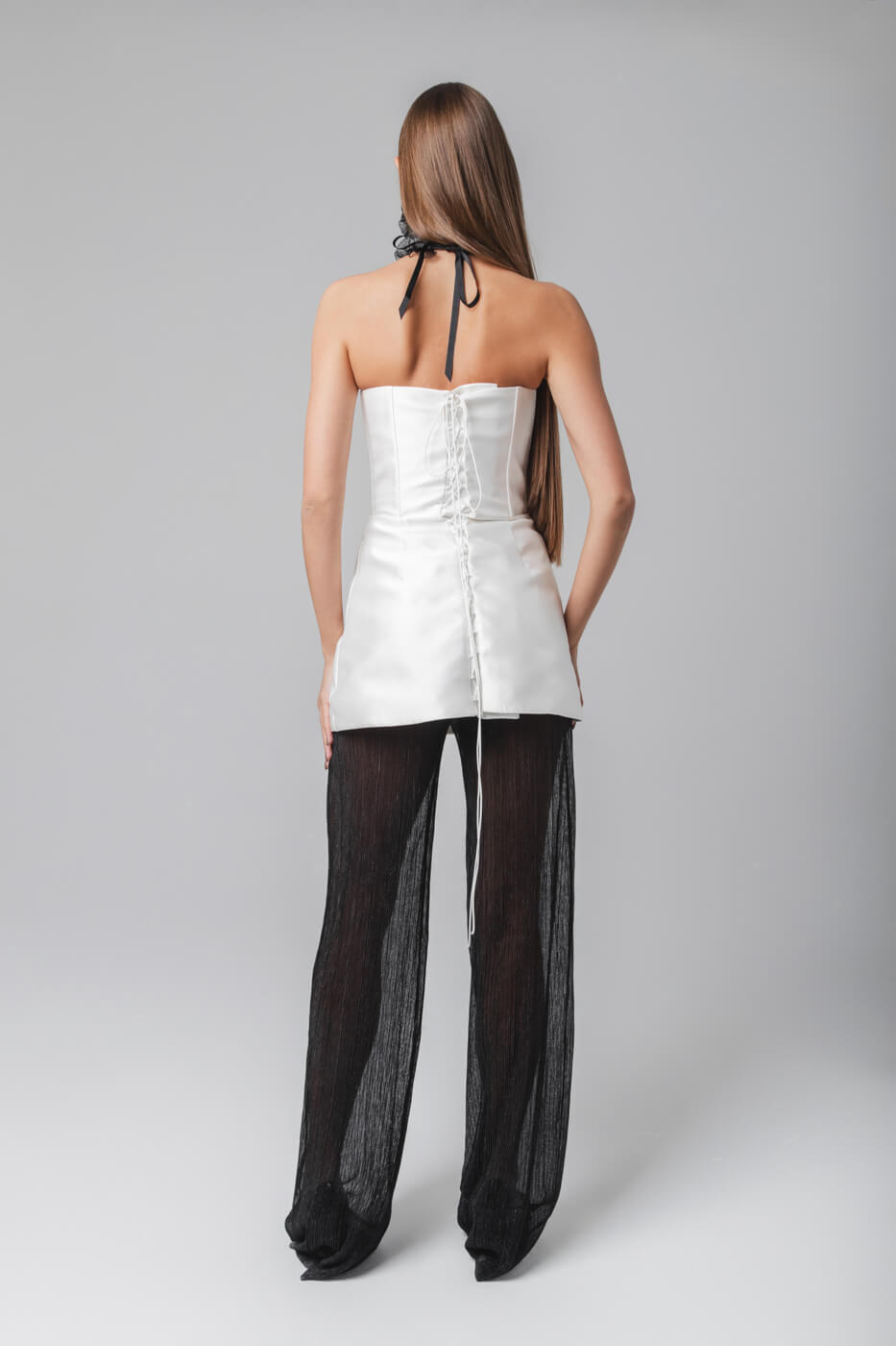Корсет «Соблазны маскарада» с баской из переливающейся тафты, сзади на шнуровке. Возможно использовать как мини-платье или с черными брюками, которые сделают образ неповторимым и гармоничным. Максимальная женственность и изящность для корпоратива или светской вечеринки.
