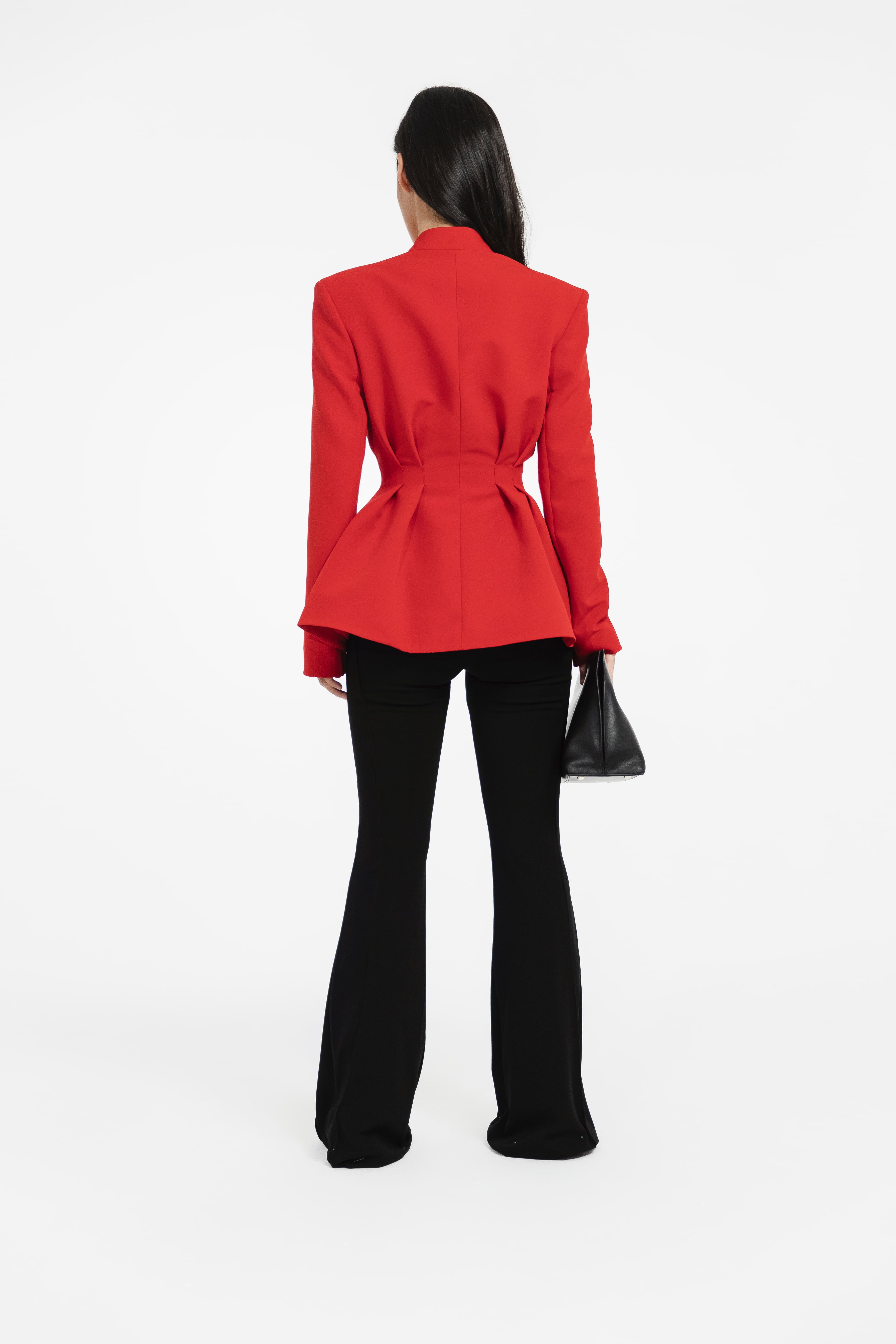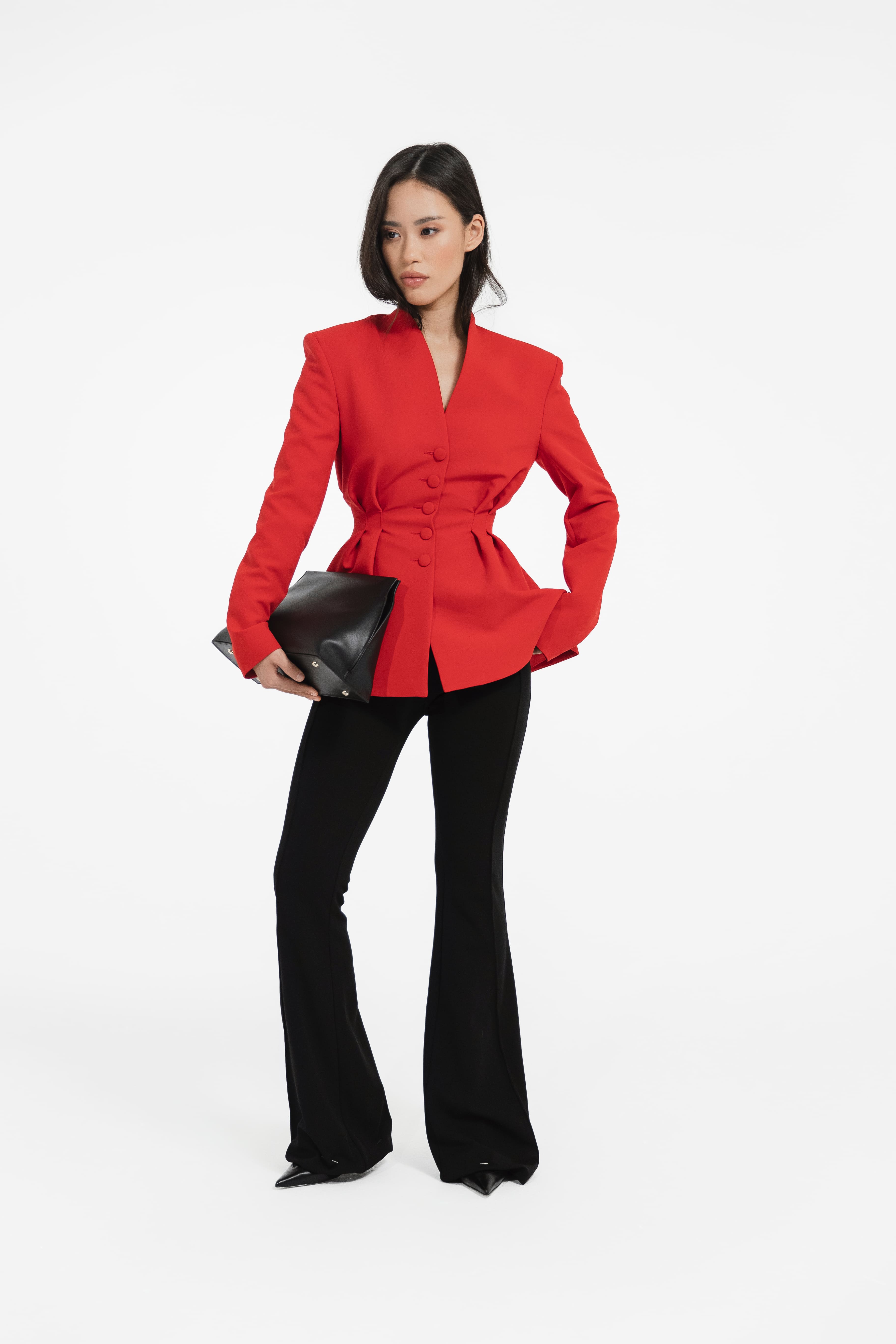 Элегантный образ из брюк-клеш и жакетом с поясом в классическом стиле